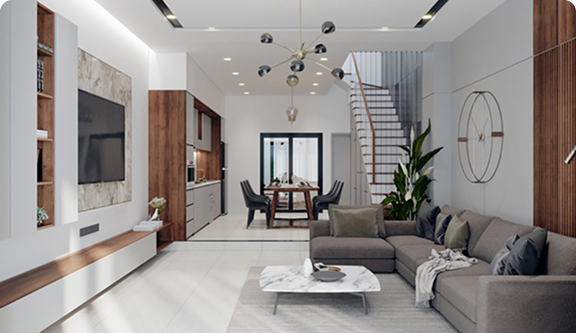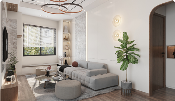 Với người đang tìm phối màu nội thất phòng khách, xem phối cảnh trước sẽ giúp dễ hình dung hơn rất nhiều.