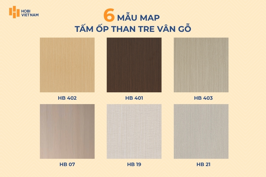 Map tấm ốp than tre 2025 của Hobi Việt Nam mang đến hơn 100 mẫu vân độc quyền: từ vân gỗ tự nhiên, vân đá marble dát vàng, đến vân kim loại, vân bê tông hiện đại. Tất cả đều tương thích với phần mềm thiết kế nội thất 3D (SketchUp, Lumion, Revit), giúp bạn xem trước không gian thật 100% trước khi thi công.