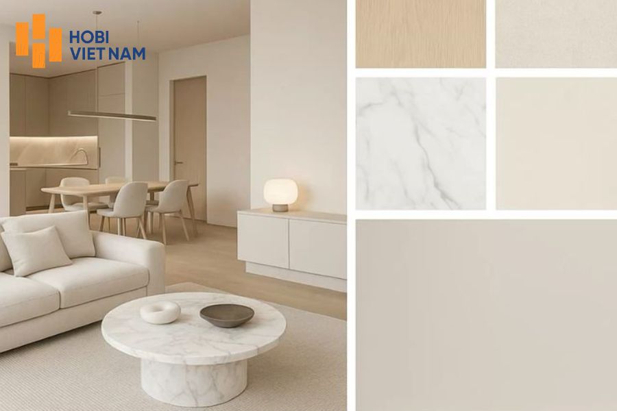 Màu sắc trung tính: be, ghi, xám nhạt, kem sữa. - Kết cấu vải nhẹ, phản sáng tốt, phù hợp không gian tinh tế.