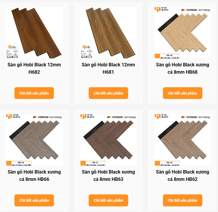 - Sàn gỗ công nghiệp Hobi Black: Dòng sàn cao cấp sản xuất tại Việt Nam trên dây chuyền công nghệ Đức, sử dụng cốt HDF đen ép áp lực cao giúp tăng khả năng chống ẩm. Nhờ kết cấu lõi chắc chắn, sàn có độ ổn định tốt, hạn chế cong vênh trong điều kiện khí hậu ẩm. Sản phẩm phù hợp cho các không gian nội thất như phòng khách, phòng ngủ, căn hộ chung cư hoặc văn phòng, nơi cần sàn gỗ bền và ít tiếp xúc trực tiếp với nước.